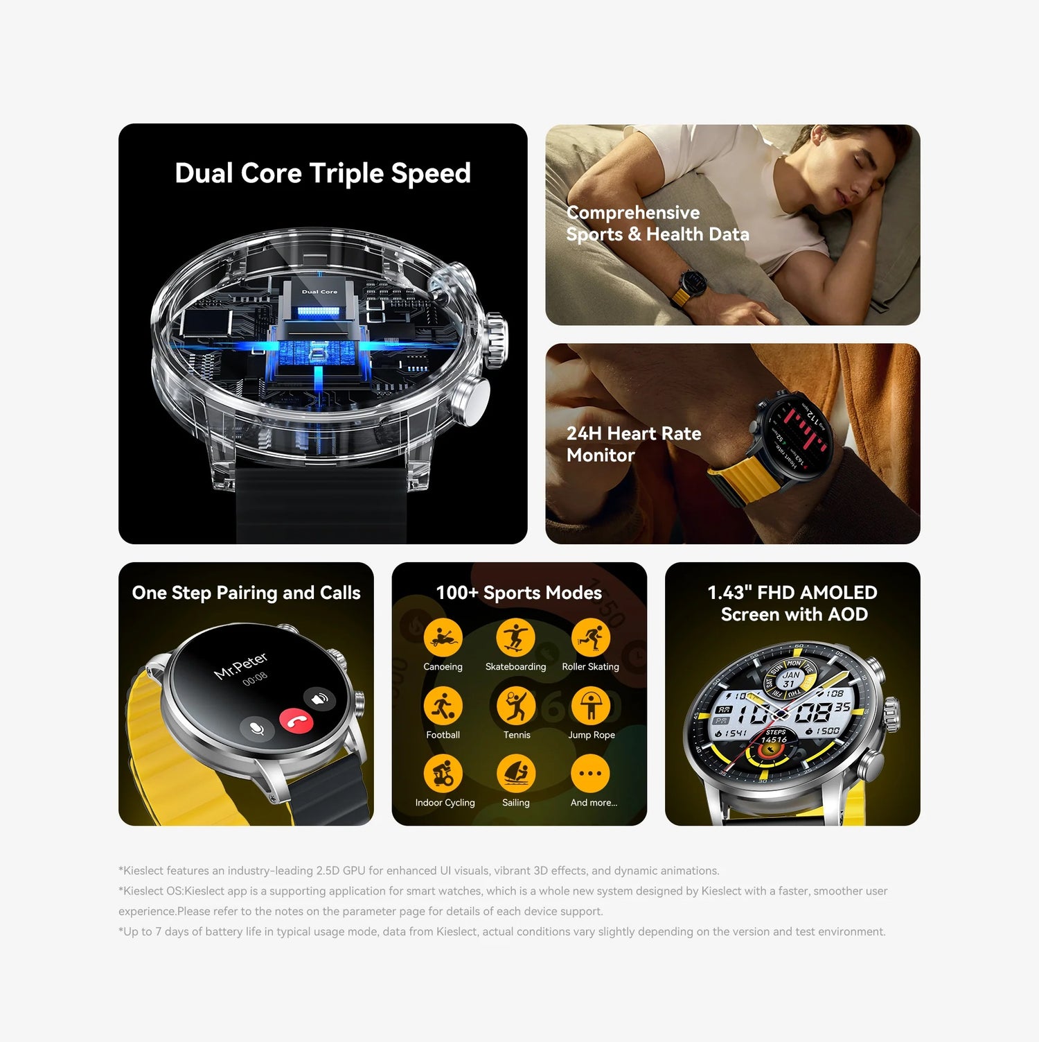 Kieslect Kr 2 Smartwatch 1.43 Inch Amoled Screen Dual Core